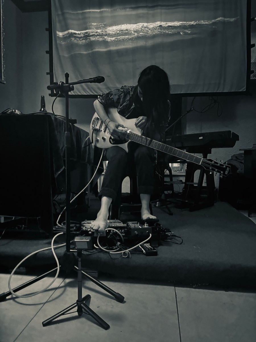 Todo arte es una manifestación de una cierta privacidad, pero la música, a diferencia de las imágenes visuales o el lenguaje articulado, parece ser de entre todas las artes la privilegiada para formular una intimidad hecha para ser compartida, tal vez en virtud de una dialéctica entre las vibraciones y el caracol del oído, un sonido que se encuentra tanto adentro como afuera, y tal vez toda la música, desde que aprendimos el placer de sonar, ya con nuestros propios cuerpos, ya percutiendo huesos y rocas, no esté tan alejado del goce de sonar que experimentan los leones marinos, las ballenas, y por supuesto, los pájaros. Piaka es un ave nocturna, que se encuentra natural entre las sombras, cómoda en su camuflaje con la inmensidad de la noche, y la particularidad de la noche es que tiene una velocidad, una densidad distinta al día. La primera vez que la escuché la vi subir solita con su guitarra, yo tenía acá ya un año y estaba acostumbrado a pensar que los sets de impro eran combinaciones de diferentes artistas, y recuerdo ahora cada vez que la escucho mi sorpresa de aquella primera ocasión en que ella con una sola guitarra y un par de pedales comenzó a invadir el espacio, mi sorpresa ante esa masa eléctrica emanando de una persona tan discreta, invalidando toda dimensión: el bar era enorme —considerando lo pequeños que suelen ser los venues que brotan y desaparecen espontáneamente en la comunidad de la improvisación— gradualmente el sonido amplificado de la guitarra eléctrica crecía como una vibración espesa y envolvente, como una invocación de una presencia que parecía que iba seguir creciendo, más allá del escenario, más allá de nosotros, excediendo las paredes del edificio, igualando la mancha urbana, mezclándose con la noche entera.