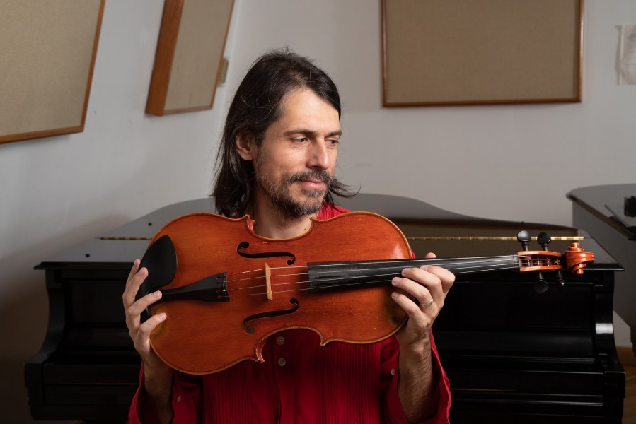 La instrucción en la partitura para el primer movimiento es “Da lontano…”, desde la lejanía. Bruck la tocó con unos ataques más quejumbrosos de lo indicado, sonidos más aflautados al final, que de acuerdo a la instrucción “poco a poco diminuendo… morendo…”, indican seguir tocando aunque los armónicos sean casi inaudibles en las últimas notas escritas, y que Bruck interpretó casi como un suspiro. Esta última instrucción no es seguida al pie de la letra por otros intérpretes, porque ¿cómo va a tocar uno sin que se oiga? A Bruck no le tiembla la mano para ser prácticamente inaudible, así como tampoco dudó en hacer de la Chacona del final una danza casi desacompasada, y de hecho, por instantes, las indicaciones de glissando microtonal en la partitura, con las que otros intérpretes serían más conservadores, en manos de Bruck suenan casi a errores, peligrosamente cerca del fuera de tono o incluso acento.