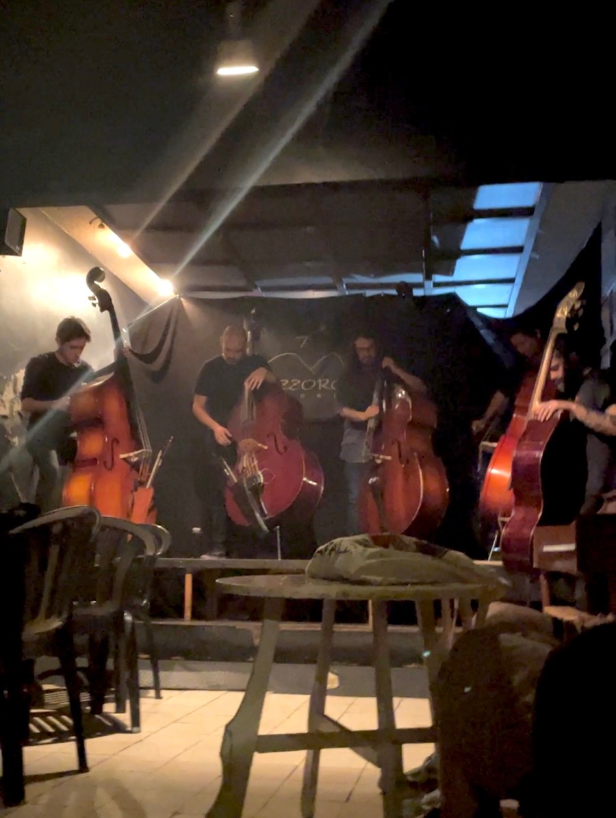 El set de Jacob Wick con Itzam Cano comenzó con una nota sostenida en la trompeta durante casi dos minutos en los que el contrabajo respondió con desarrollos interrumpidos que se fueron alargando siempre bajos, y la trompeta de Wick fue descendiendo de la nota alta hasta convertirse en un resoplido sordo y seco. Jacob tiene un sonido precioso en la trompeta, que sabe conducir desde la textura brillante y angelical hasta el mofle desbocado de un motor de combustión interna necesitado de un cambio urgente de filtro. Itzam supo perfectamente qué hacer con eso, porque además de tener alma de punk comparte con Jacob una relación afectuosa con el Free jazz y por lo tanto un sentido de la frase musical, idea y respuesta dentro de los límites exiguos de una tonalidad tambaleante.