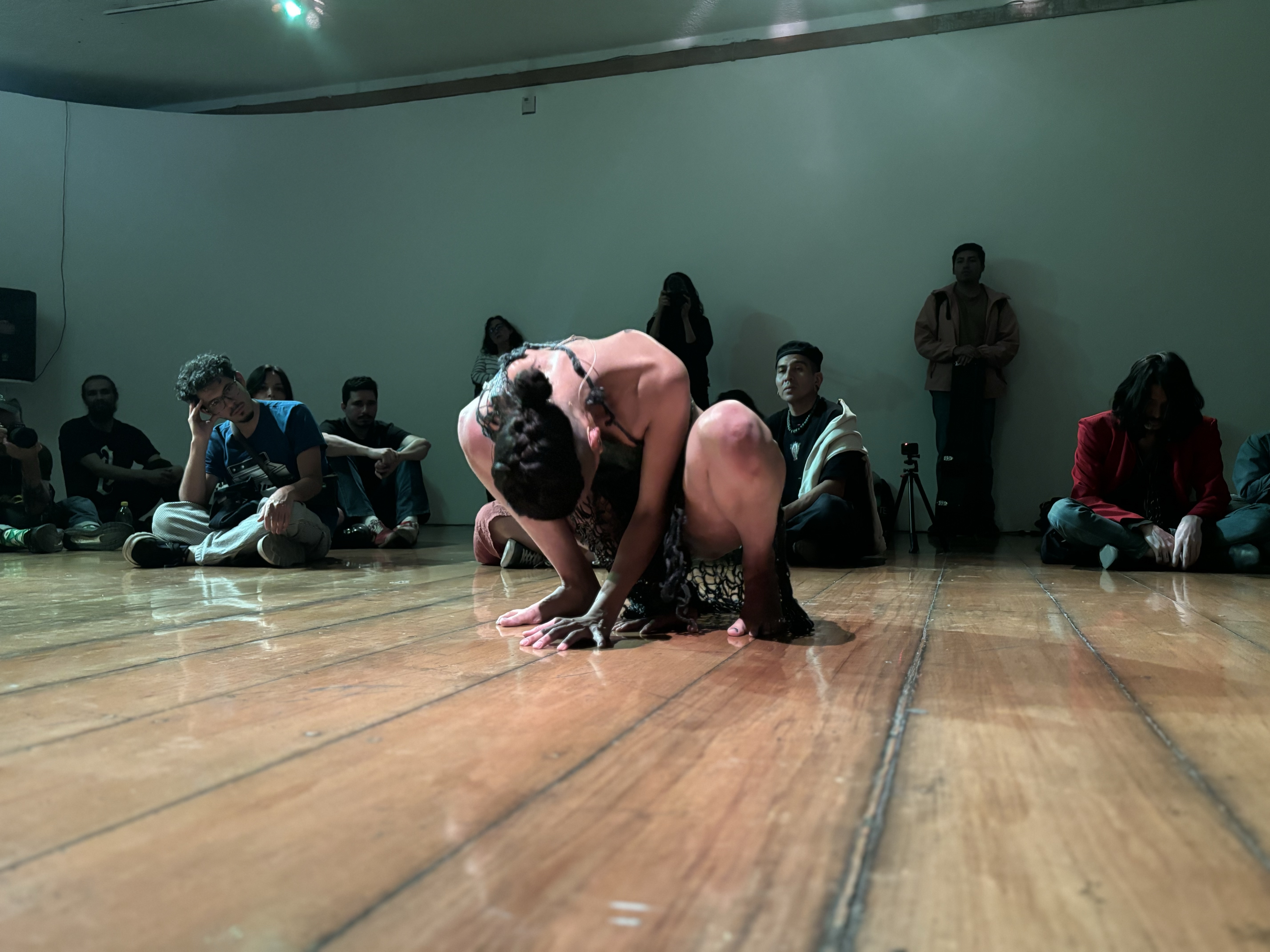 Para concluir su paso por el país y habiendo tocado la escena de la improvisación libre de esta ciudad tanto como le fue posible, le organizaron una pequeña fiesta de despedida entre Gudinni Cortina, Aleida Pérez y Enrique Arriaga, y la fiesta consistió en improvisaciones de los artistas, porque así se celebran. El certificado de autenticidad de una colaboración entre artistas es el afecto con el que se cierra la calidad del pacto, y es una dicha, si los honores institucionales pueden llegar a ser injustos, el afecto nunca lo es. La reacción a una obra, con una apertura como la de la Lorena, habla de los artistas de la escena de esta ciudad también, sencillamente no es posible improvisar si el gesto de ambas partes no es auténtico, si no se está dispuesto a afrontar lo imposible de un destino no escrito con la misma calidad y talento para el salto, por eso he venido comprendiendo, a pesar de ser un crítico localista y recalcitrante, que tratar de entender a los artistas extranjeros que pasan por acá, como en los últimos días han pasado Amanda Irarrázabal y Gabby Fluke-Mogul, es entender la calidad de rango armónico y emocional de los artistas que ya creo conocer, mediante el encuentro con artistas que me parece empezar a comprender y en donde nace el deseo, como un brote de plantita, de seguirlos conociendo.