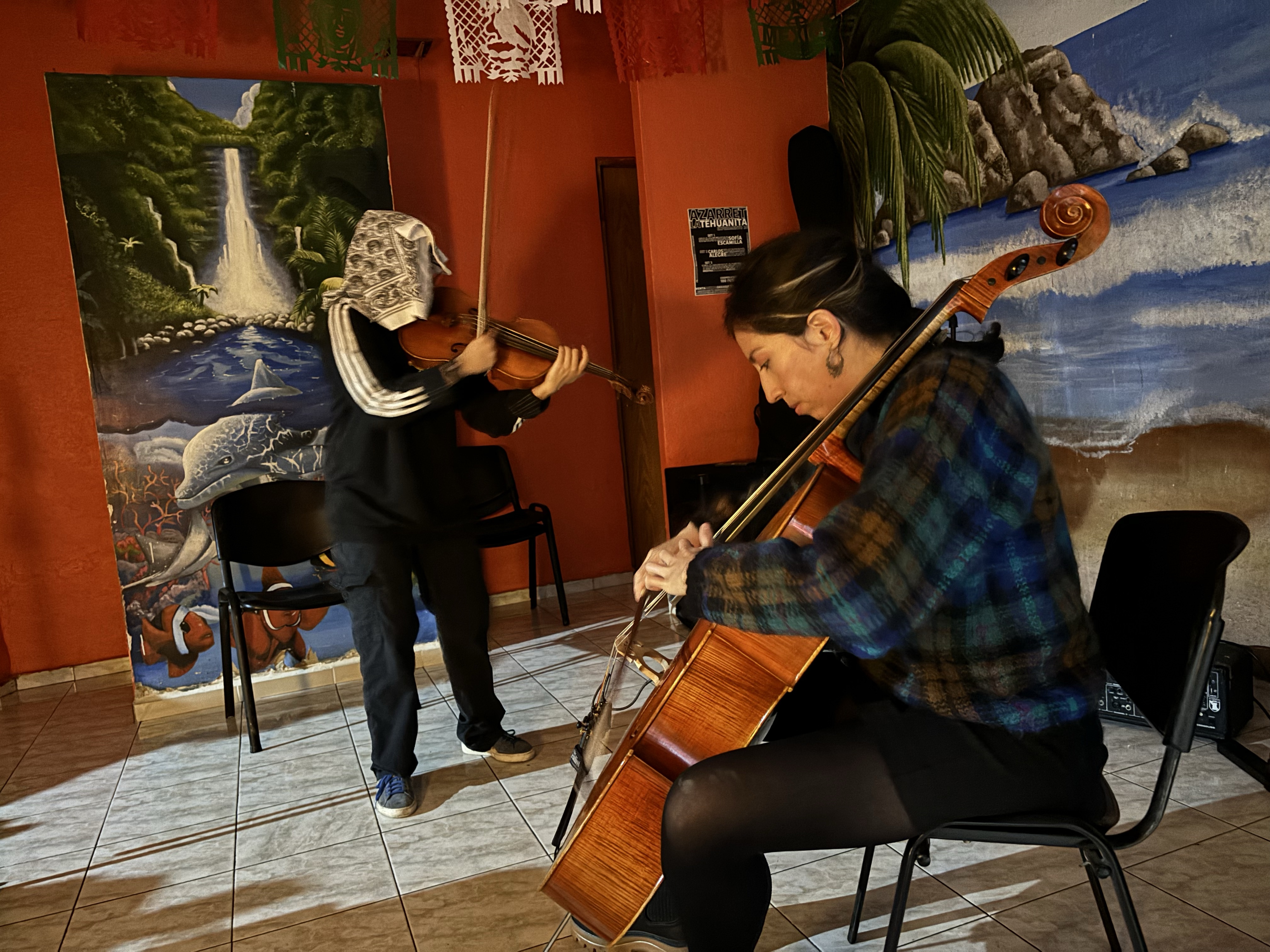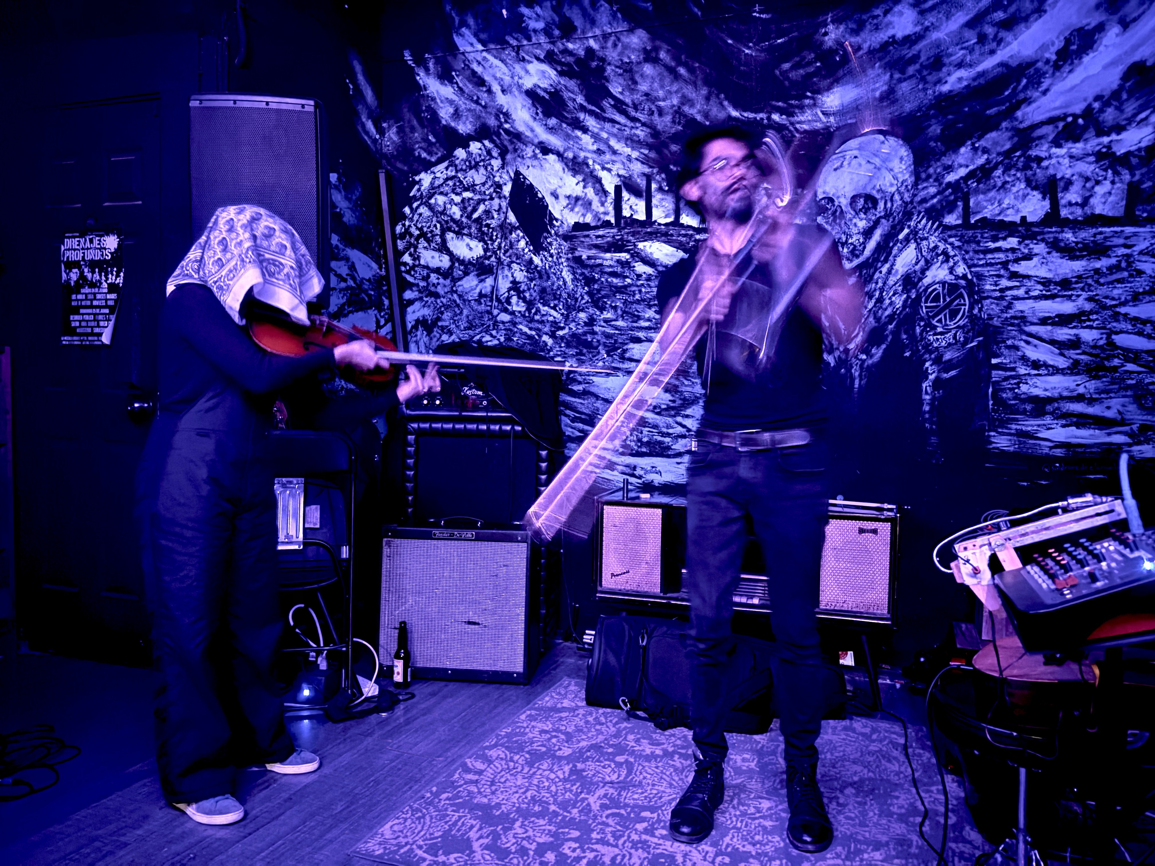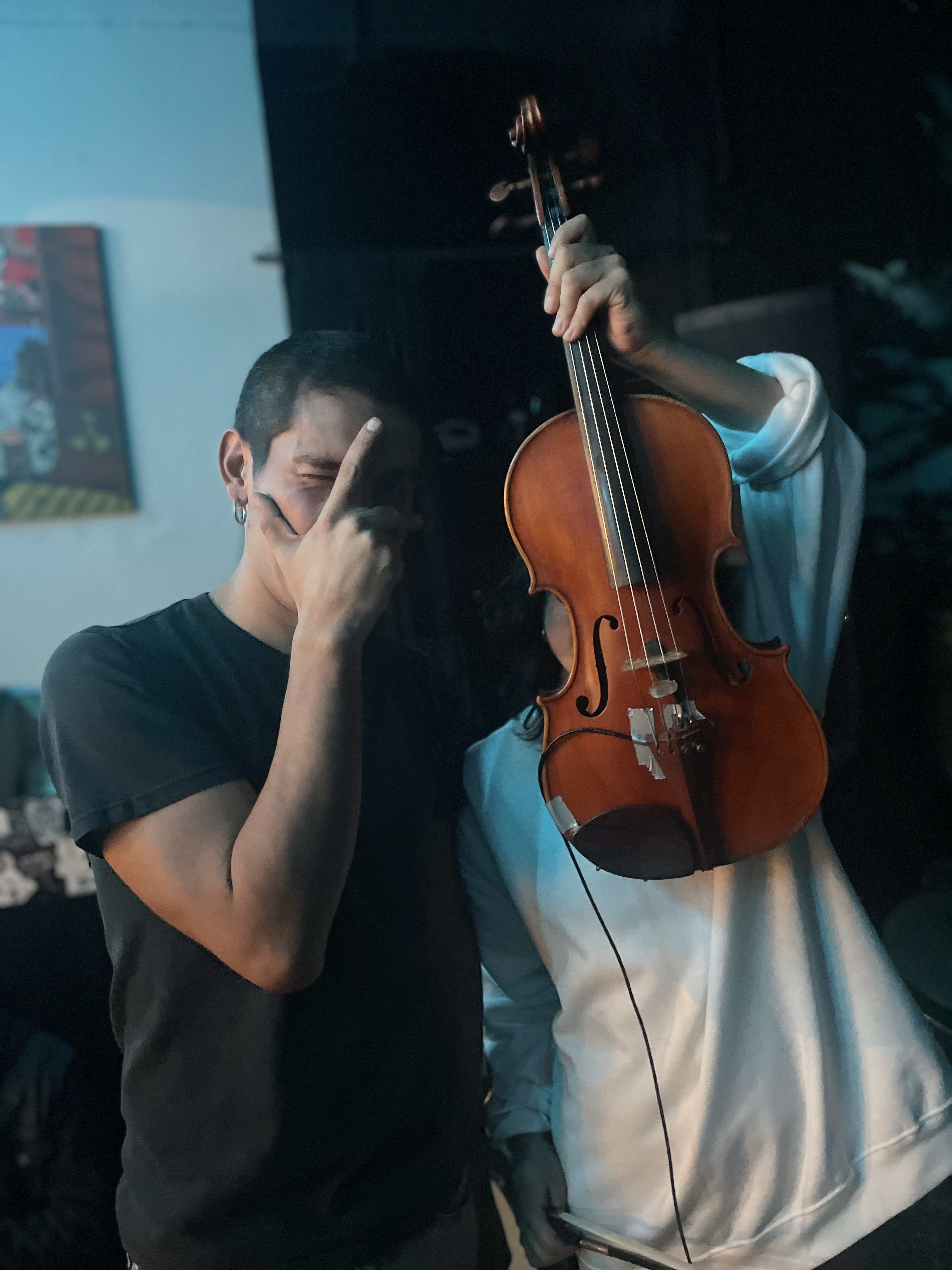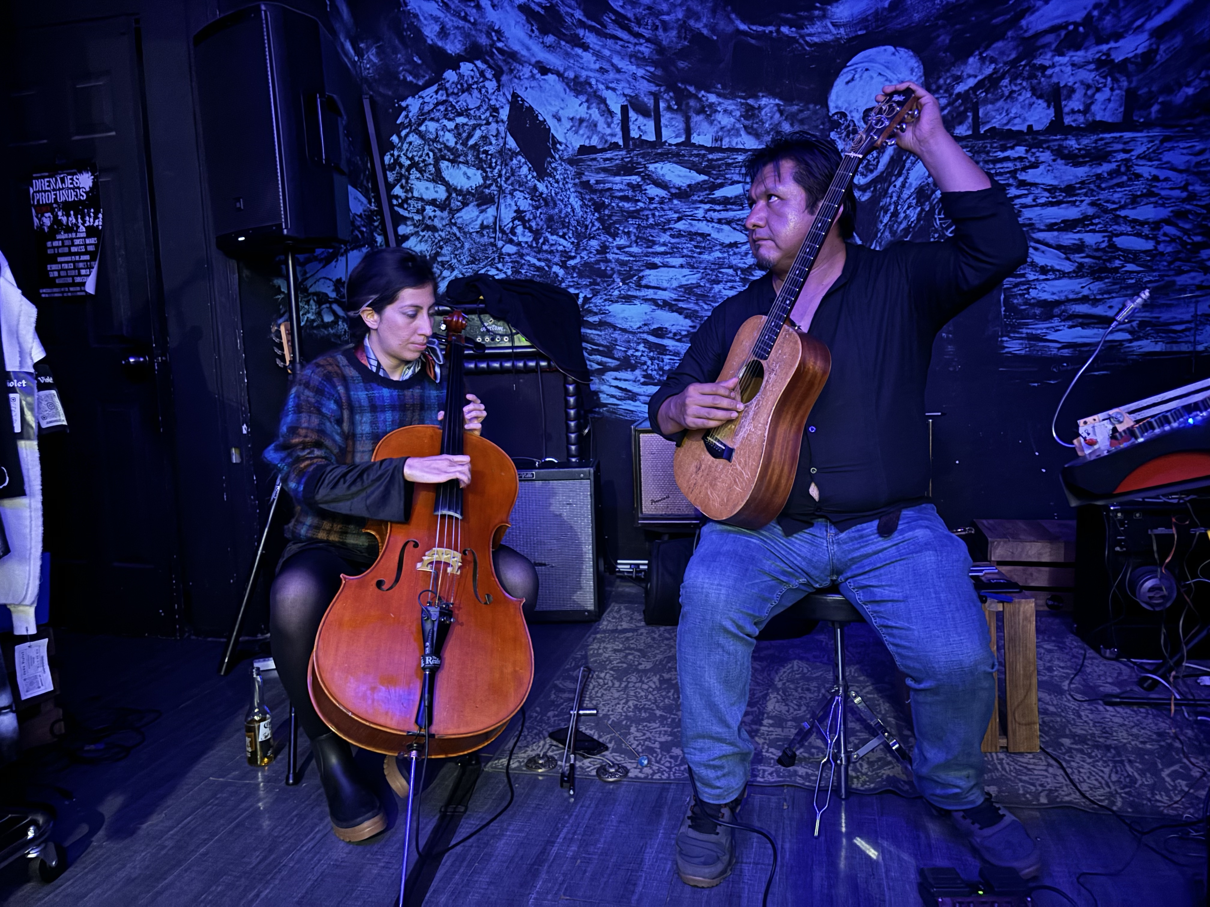 La asertiva agresividad de Aleida, su manera contundente para proponer, tiene la virtud de sacar a las personas con quienes improvisa estados de sonoridad a los que de otra forma no accederían. Aleida es siempre definitiva en sus destellos, Shaostring titubea aquí y allá, y tal vez la afirmación resuelta de Aleida sea en el fondo una manera de lidiar con la duda y la reticencia de Shaostring una reflexión de la certeza. La canción de Shaostring es un ritmo sostenido que me ha intrigado desde la primera vez que la escuché porque la melodía en sí es un misterio, y qué debe haber en un corazón para que la melodía surja sin fin, qué sino el deseo de encontrarse, y la viola, tan olvidada por el repertorio, tiene esta capacidad de encontrarse con la sombra y el brillo. La elección del instrumento es la elección de un rango emocional. La improvisación del dueto fue congruente en el sonido no sólo porque la duda y la afirmación se alimentan mutuamente sino porque ambas comparten algo, una especie de la insatisfacción, una exigencia de que las cosas puedan ser de otra manera, una fragilidad comprendida, y una tendencia a las emociones oscuras, difíciles tal vez. No es que la sensibilidad de ninguna de las dos se limite al lado de la sombra, es que en el encuentro de su improvisación, es que los trémolos, los ataques y glissandos de ambas hacia las notas opuestas se contraponían en tensión armónica, la extensión soportada de un conflicto interno exteriorizado entre las notas graves y las alturas casi todo el tiempo, casi, como entre la aceptación y el rechazo pero no de su intercambio, sino de la organización que juntas elaboraban como posición ante la rabia. Hay toda una dialéctica de la rabia presente en no pocos integrantes de la comunidad de la improvisación que nos habla del malestar, un malestar que seguramente tiene algo que ver con la dificultad de encontrar un lugar en el mundo para hacerse escuchar, una soledad irreductible, pero también una manera gozosa de sonar con quienes comparten ese malestar y que se canta en conjunto con una riqueza inexhaustiva. La delicadeza de matices que encuentran la tristeza, la rabia, la melancolía o la simple inconformidad, cuando se formulan a través de una expresión efectiva, a través de la creatividad y el talento, dejan de ser intratables, y entonces las podemos vivir, compartir. La metabolización de la rabia puede dar paso a una especie de goce sin absolverla, tal vez por eso al escuchar, desde el público, siento una especie de descanso. En un momento clave del concierto, en una pausa diminuta, el violín dio un brinco abrupto, luego otro y otro sobresalto, la viola respondió titubeante con las yemas de los dedos calmas ante el rugido áspero de los pasos dobles, y entonces sucedió eso tan inexplicable que sucede en una improvisación, ese lugar de encuentro en que parece que todos estamos de acuerdo en que estamos sintiendo algo parecido, un movimiento perceptible de cabezas que asienten ligeramente y sonrisas en la audiencia se propagan como si pensáramos en un acuerdo discreto que para eso habíamos venido, para una confluencia. La viola inició un camino descendente que el violín jalaba hacía arriba y llegaron a una espesura llena de pequeños colores para detenerse justo en el portal del silencio, sin resolver la situación creada, como si la irresolución fuera la forma correcta ante la noche del alma, para dejar entrar como saliendo de un sueño el ruido del tráfico de la ciudad allá afuera.